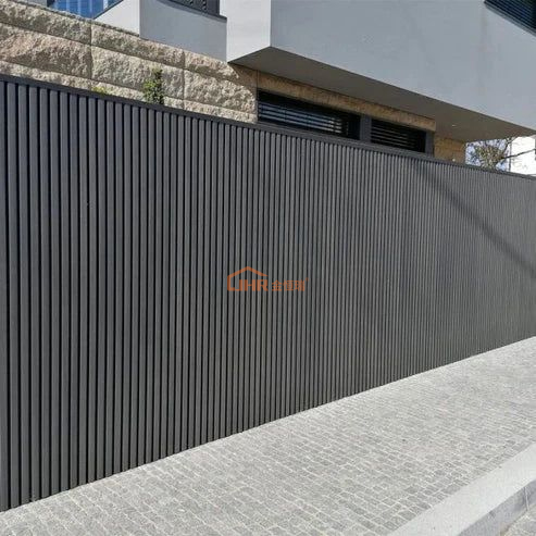 The wall panel-style vertical slats provide full visual coverage from the outside. Whether used for residential driveways or commercial entrances, this gate ensures your space remains private and secure.